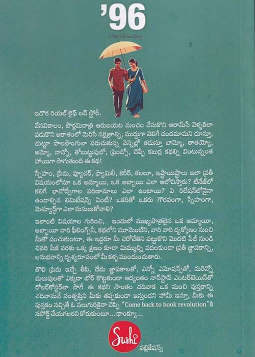 తొలి ప్రేమ ఇచ్చే తీపి, చేదు జ్ఞాపకాలతో, ఎన్నో ఎమోషన్స్, మరెన్నో మలుపులతో ఎక్కడా బోర్ కొట్టకుండా ఆద్యంతం నాన్స్టాప్ ఎంటర్టైయిస్ రోలర్ కోస్టర్ల సాగే ఈ కథని సొంతం చదివాక ఒక మంచి పుస్తకాన్ని చదివామనే సంతృప్తిని మీకు తప్పకుండా ఇస్తుందని హామీ ఇస్తూ, మీకు ఈ పుస్తకం నచ్చితే నలుగురికైనా చెప్పి “Come back to book revolution” సపోర్ట్ చేయగలరని కోరుకుంటూ… థాంక్యూ…