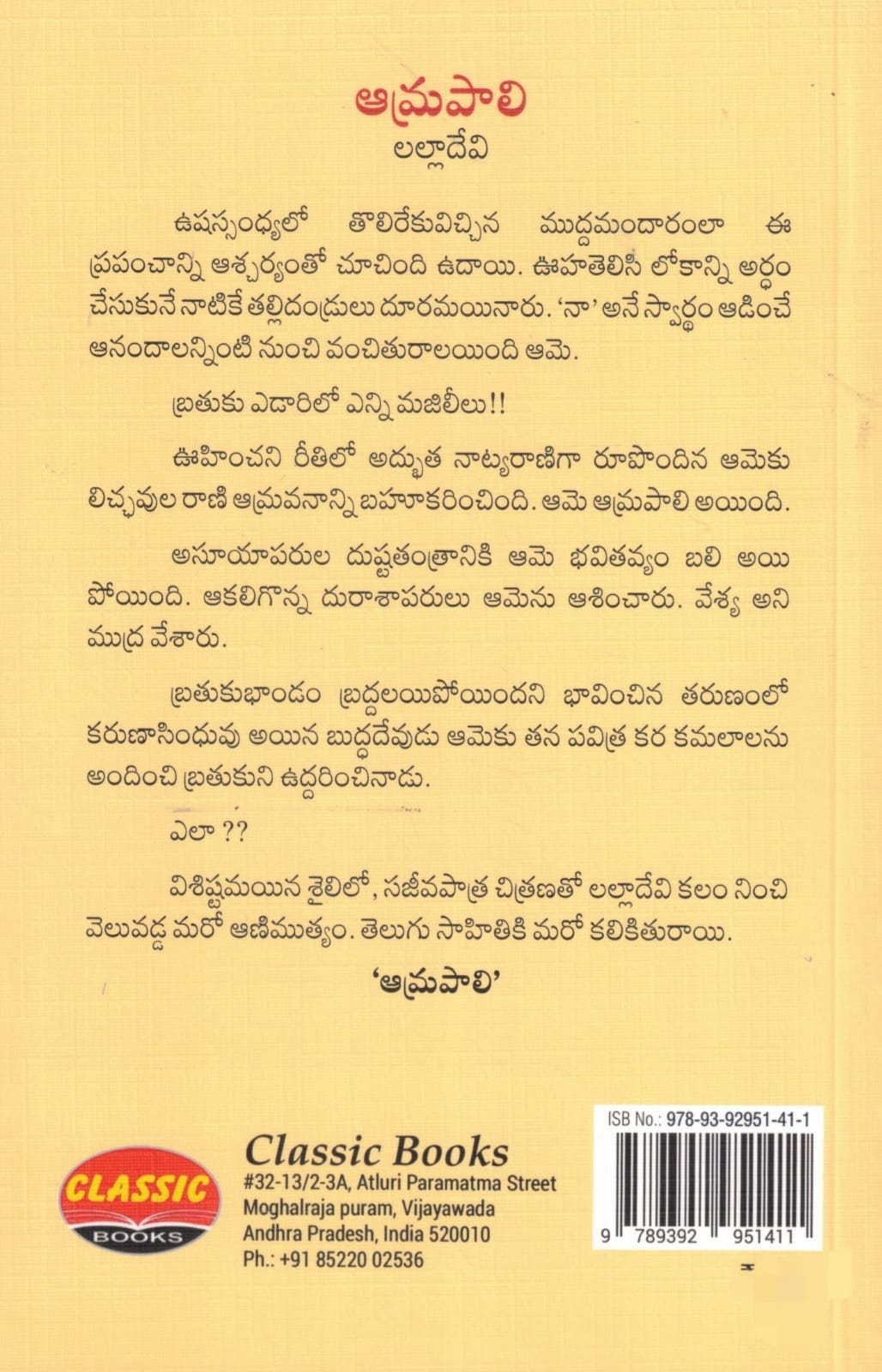 విశిష్టమయిన శైలిలో, సజీవపాత్ర చిత్రణతో లల్లాదేవి కలం నించి వెలువడ్డ మరో ఆణిముత్యం. తెలుగు సాహితికి మరో కలికితురాయి.