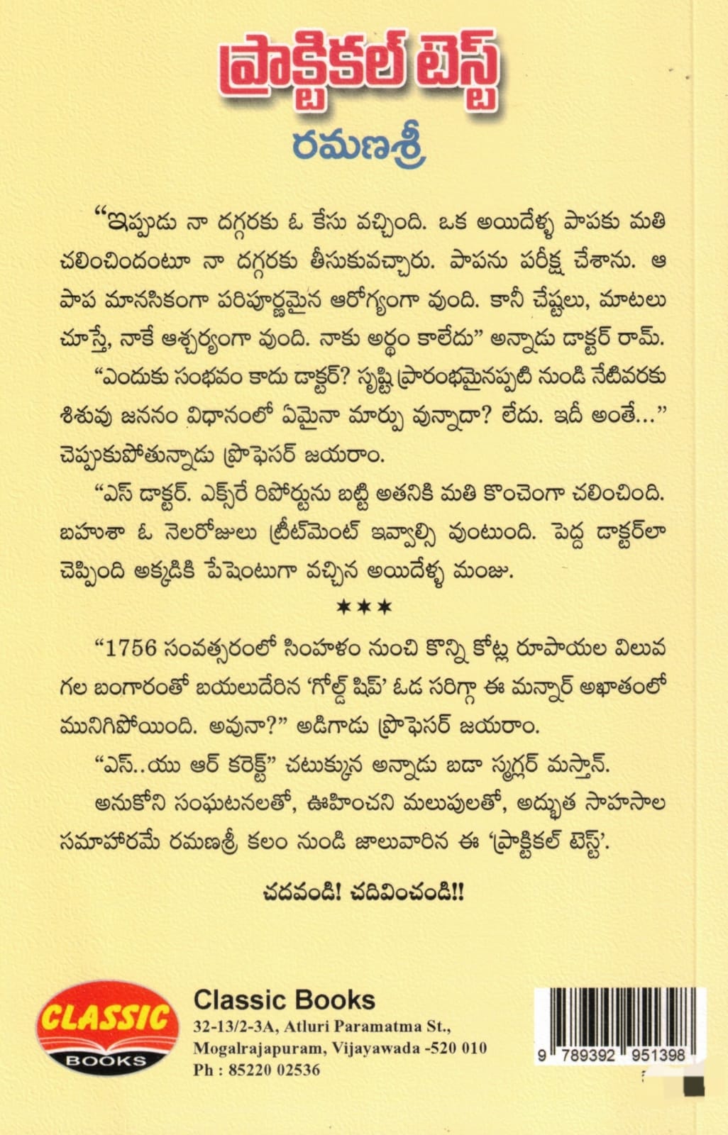 అనుకోని సంఘటనలతో, ఊహించని మలుపులతో, అద్భుత సాహసాల సమాహారమే రమణశ్రీ కలం నుండి జాలువారిన ఈ ‘ప్రాక్టికల్ టెస్ట్’.